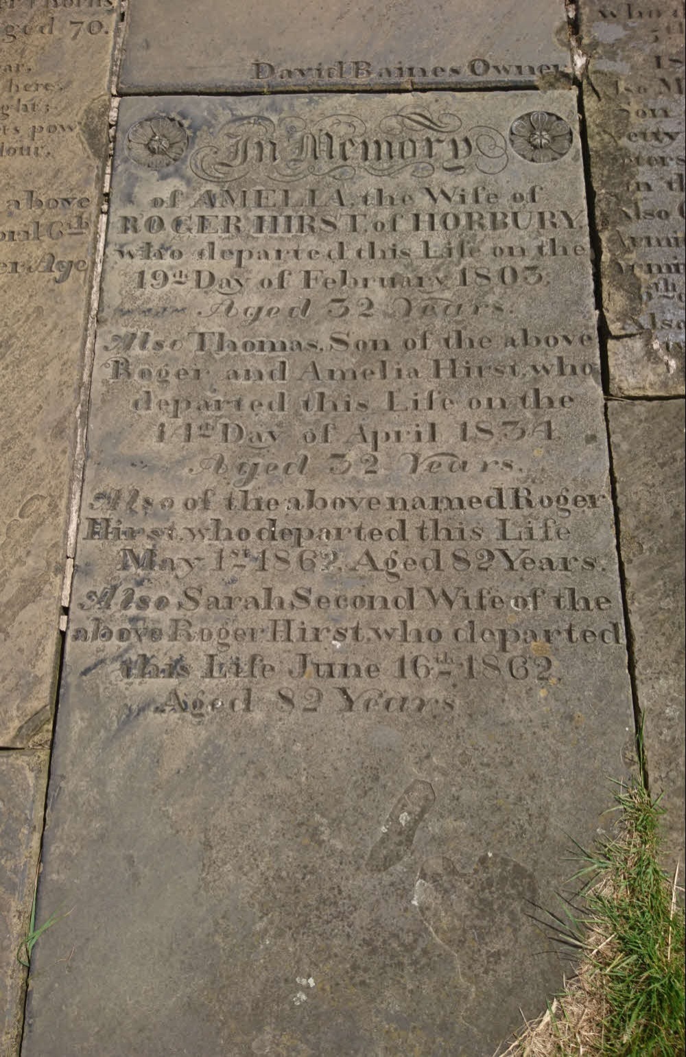 Also Thomas, son of the above Roger and Amelia Hirst, who departed this life on the 14th day of April 1834, aged 32 years.